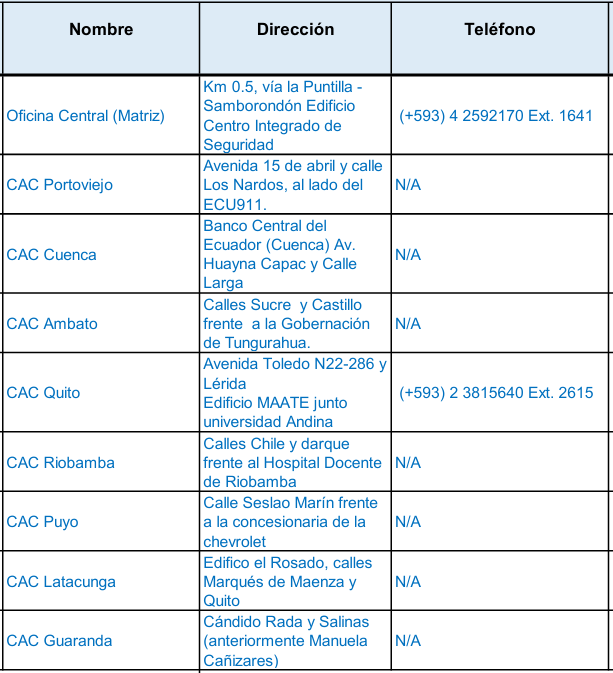 Canales de atención: Correo electrónico, Presencial, Sistema de Gestión Documental Quipux (www.gestiondocumental.gob.ec).