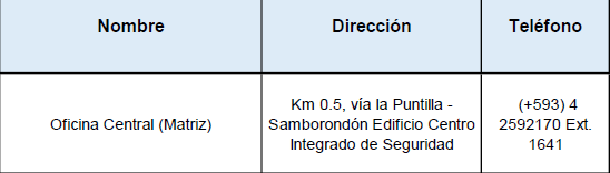 Canales de atención: Correo electrónico, En línea (Sitio / Portal Web / Aplicación web), Presencial, Sistema de Gestión Documental Quipux (www.gestiondocumental.gob.ec).