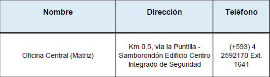 Canales de atención: Correo electrónico, En línea (Sitio / Portal Web / Aplicación web), Presencial, Sistema de Gestión Documental Quipux (www.gestiondocumental.gob.ec).
