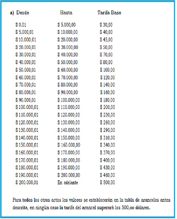El costo dependerá del avalúo del bien inmueble, de acuerdo a la siguiente tabla: